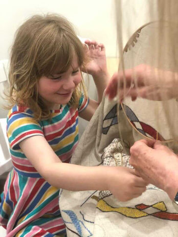 A key aim of The Dundee Tapestry was to include the community, both as volunteer stitchers and as people who could provide stories about the city. Workshops were organised at key stages to invite members of the public and community organisations to add a stich to the panels, and share their memories of growing up in the city.
